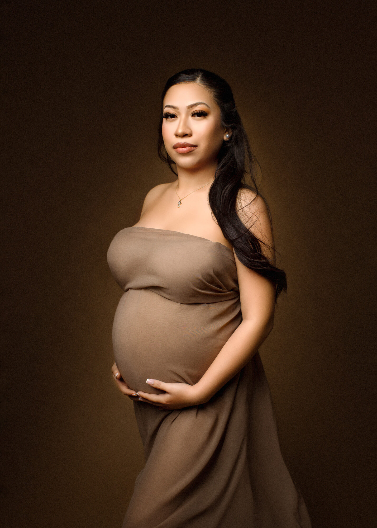 Getting ready for your maternity session should be easy and exciting, not overwhelming. With a little planning (and guidance from me!), you’ll walk into your session feeling confident and camera-ready. You won’t ever need to stress about what to wear because it is all planned ahead of time. Before your session, we’ll carefully select your looks together from my Client Closet, which is stocked with elegant form-fitting gowns, drapes, and fabrics designed to highlight your bump in a timeless and elevated way. By the time you arrive at the studio, every outfit has already been chosen and prepared for you.